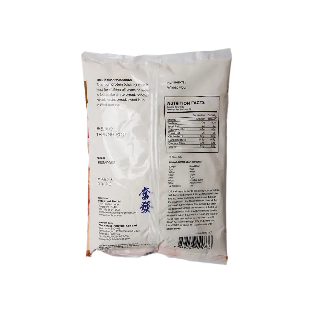 Our Redman Bread Flour is halal-certified and a product of Singapore, packed in a ISO22000 certified facility. Bread flour, also known as strong flour, contains a higher amount of protein (12.8%-13.8%) as compared to all-purpose flour, which results in a chewy and airy texture when baked. It often replaces all-purpose flour as the main ingredient in baking. It is, however, important to note that it can only be used specifically for the baking of breads or buns.